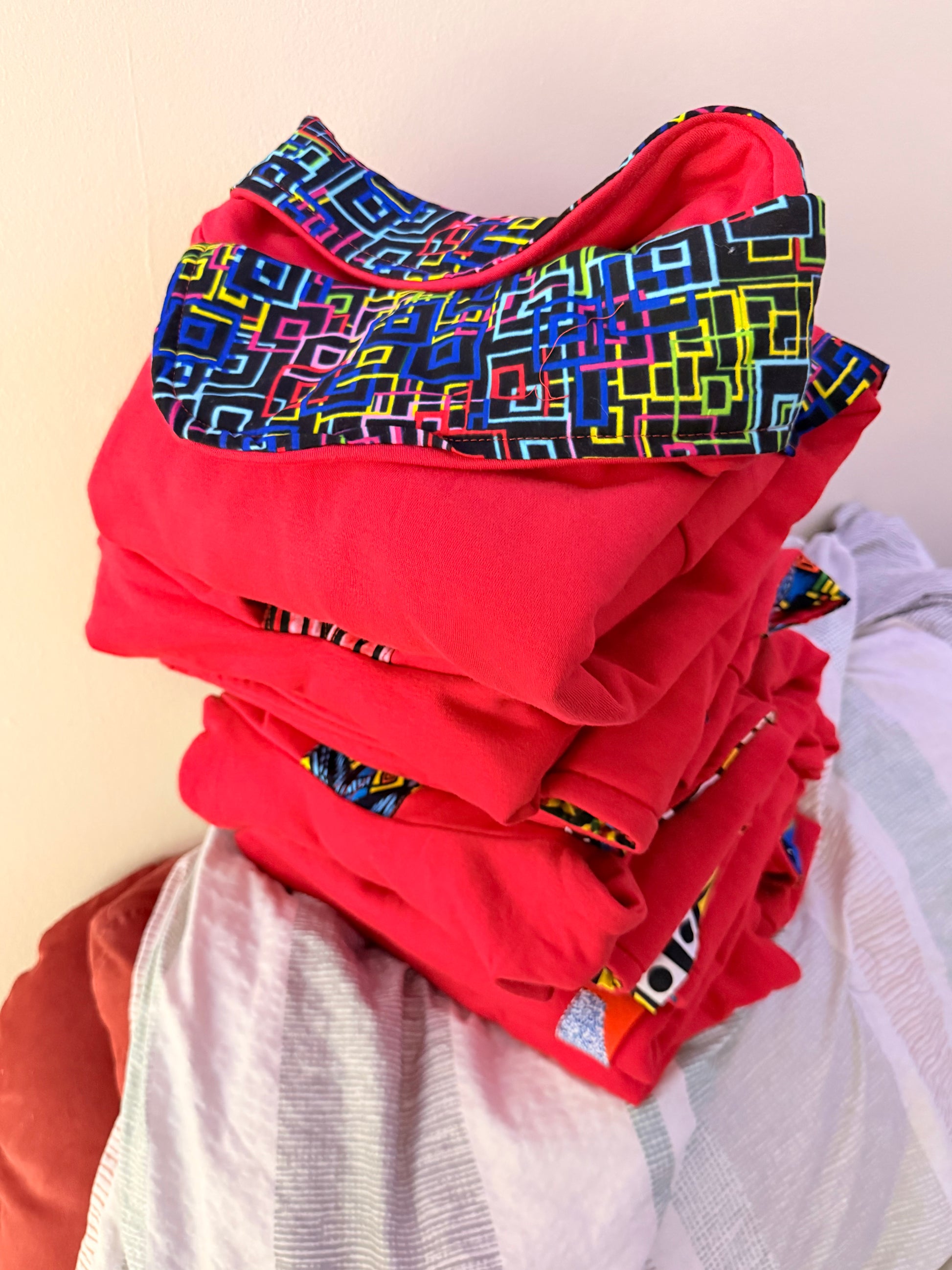 This hoodie is a bold fusion of contemporary streetwear and heritage-inspired design. Crafted from a vibrant crimson-red premium fleece, it serves as a high-energy canvas for its most striking feature: the intricate geometric patterns.