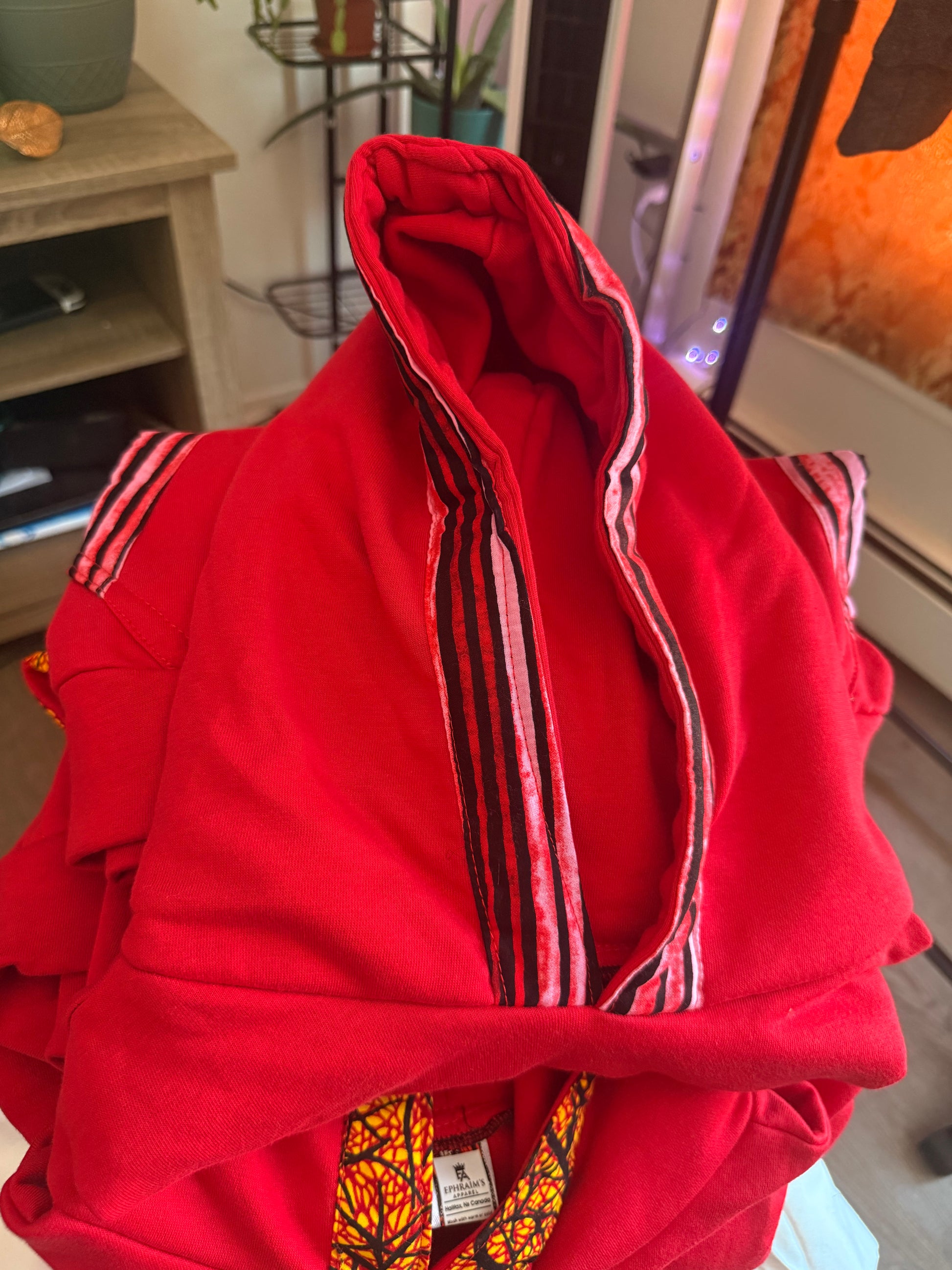 Red hoodie with stripped prints